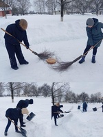 В рамках Декады мужества члены отряда БРПО "Созвездие" приняли участие в акции "Хоккей с метлой" по уборке территории от снега.